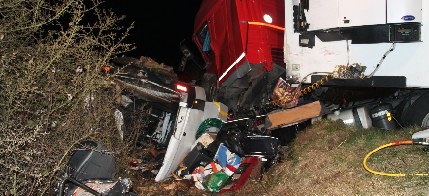 Collision de face entre le fourgon et un camion