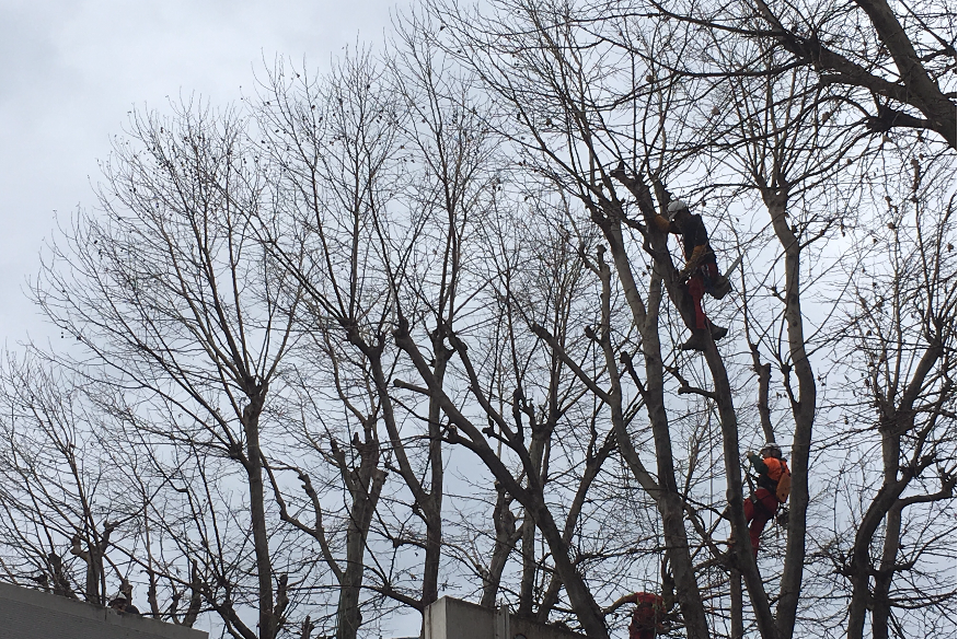 Opération comme toujours spectaculaire qui vise à donner le moins d’abri possible aux oiseaux, à l’intérieur des arbres