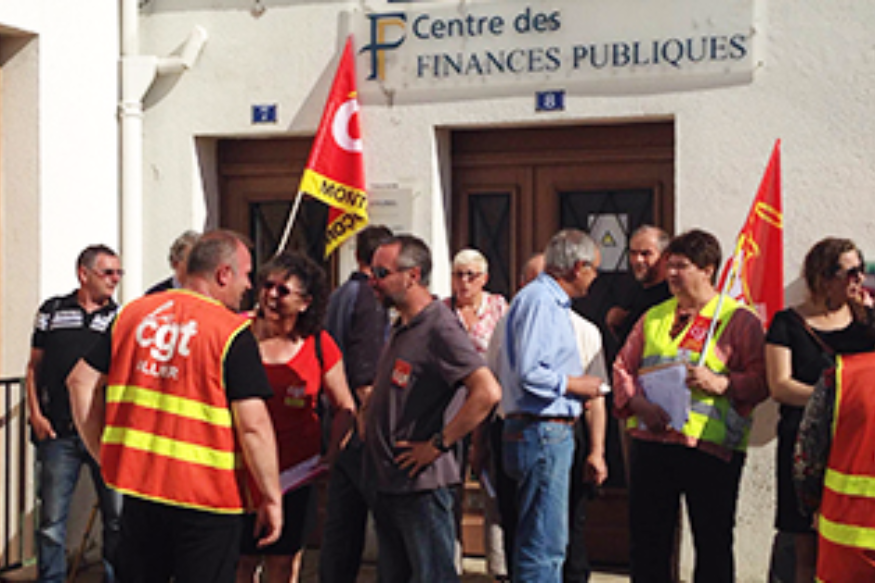 Rassemblement d’une trentaine de personnes, militants syndicaux, élus, usagers, hier soir devant la trésorerie d’Huriel