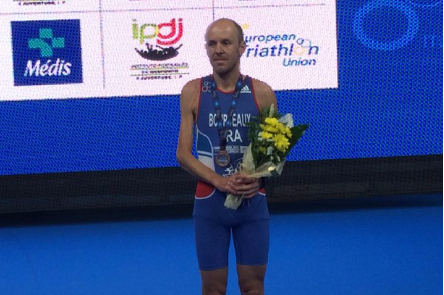 Yannick Bourseaux (photo : Twitter @FFTRI) a terminé 3e hier des championnats d'Europe de paratriathlon à Lisbonne (Portugal). Le sociétaire du Triathlon académie Montluçon a été devancé par l'Allemand Martin Schulz et l'Espagnol Jairo Luiz Lopez.