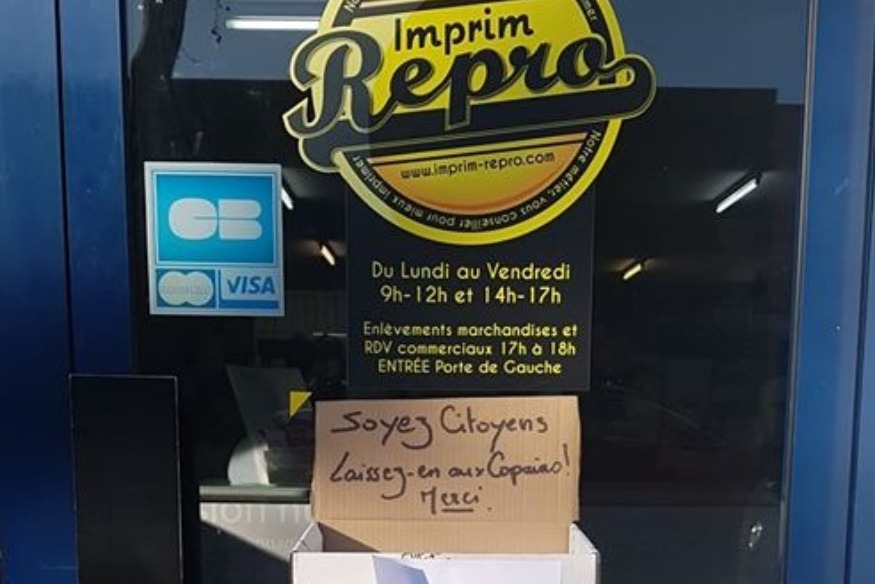 Solidarité. En plein confinement, ce beau geste de l’entreprise montluçonnaise Imprim repro. Depuis mercredi, cette imprimerie dépose plusieurs centaines de copies des fameuses attestations de déplacement dérogatoire sur la porte de ses locaux du quai Louis-Blanc.
