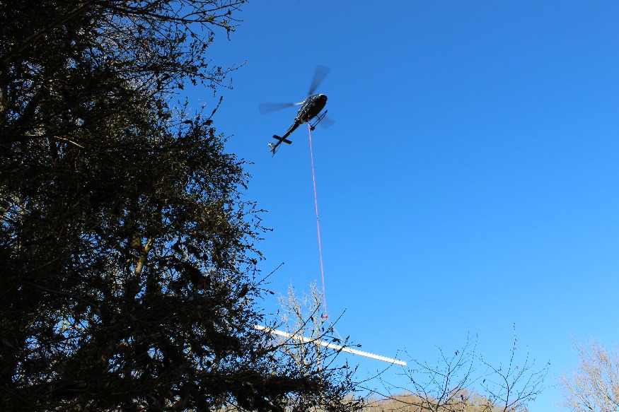 Opération spectaculaire d’hélitreuillage des différents éléments d’une passerelle métallique