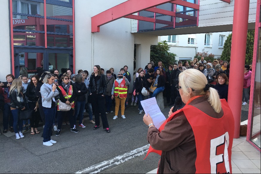 Un rassemblement a eu lieu en début de journée devant le bâtiment de la direction, avant un tractage dans les rues de la ville
