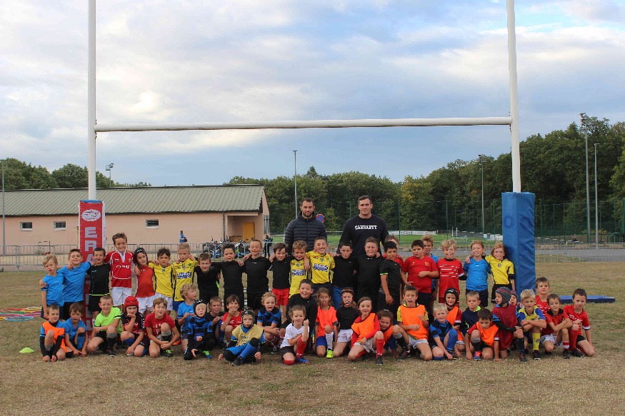 Ils ont reçu la visite de deux enfants du pays qui ont bien grandi : Paul Jedrasiak, 2e ligne de l’ASM et de l’equipe de France dont la famille est originaire du bassin minier et Julien Kazubek, formé à Commentry, passé par l’ASM qui évolue aujourd’hui à Nevers en Pro D2