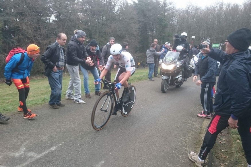 Dans la côte de Charbonnières à une vingtaine de kilomètres de l’arrivée, il a donc mis tout le monde dans le rouge, s’isolant brièvement en tête de course