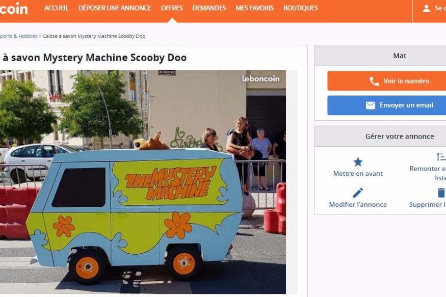 Cette "mystery machine"de Scooby-doo avait fait sensation, dimanche dernier, séduisant le jury. Le vendeur précise sur le site d'annonce que l'engin est "équipé d'une direction avec 2 roues libres à l'avant montées sur roulements SKF et platines en alu, un volant de Kart, des frein à tambour arrière monté sur arbre arrière axe plein de 25, une carrosserie en contreplaqué, et 4......
