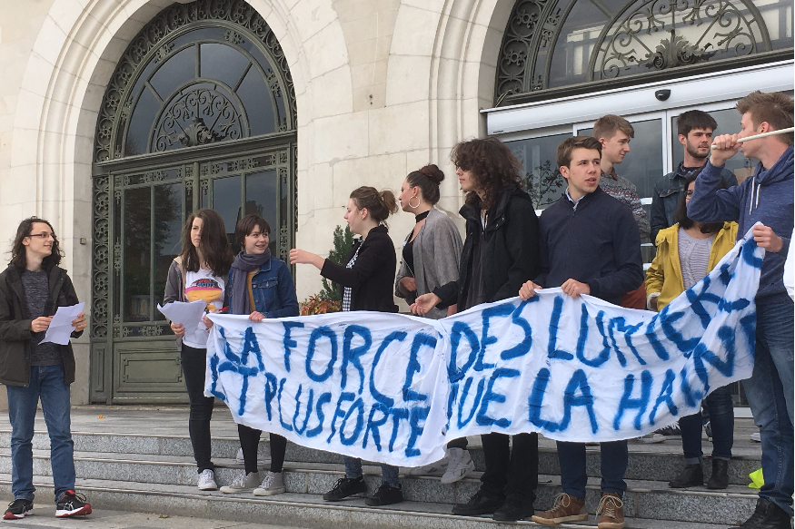Une quinzaine de lycéens, encadrés d’une quinzaine de représentants syndicaux, se sont rassemblés hier après-midi contre le Front National