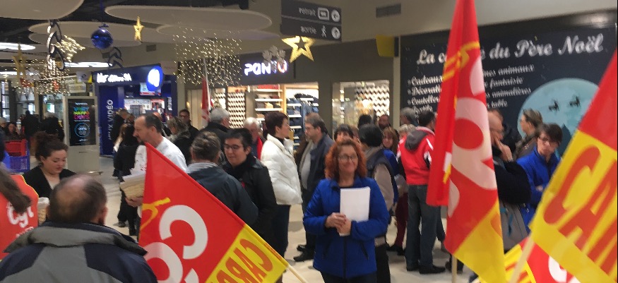 Les salariés grévistes ont distribué des tracts aux clients du magasin. Ils étaient soutenus par des militants locaux de la CGT, à l’initiative du mouvement.