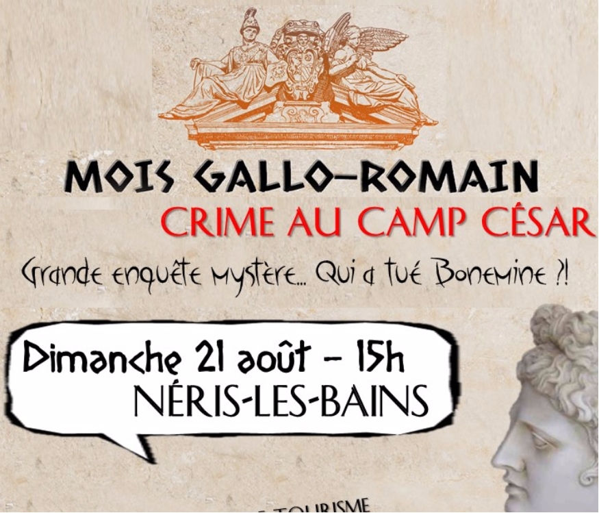 C'est le début du mois Gallo-Romain à Néris-Les-Bains ! Et pour s'imprégner de l'ambiance de ce mois qui s'annonce, l'office du tourisme vous propose de mener l'enquête sur le camp de César ce dimanche 21 Août à partir de 15 h. Une enquête à mener par équipe de deux à six joueurs !
