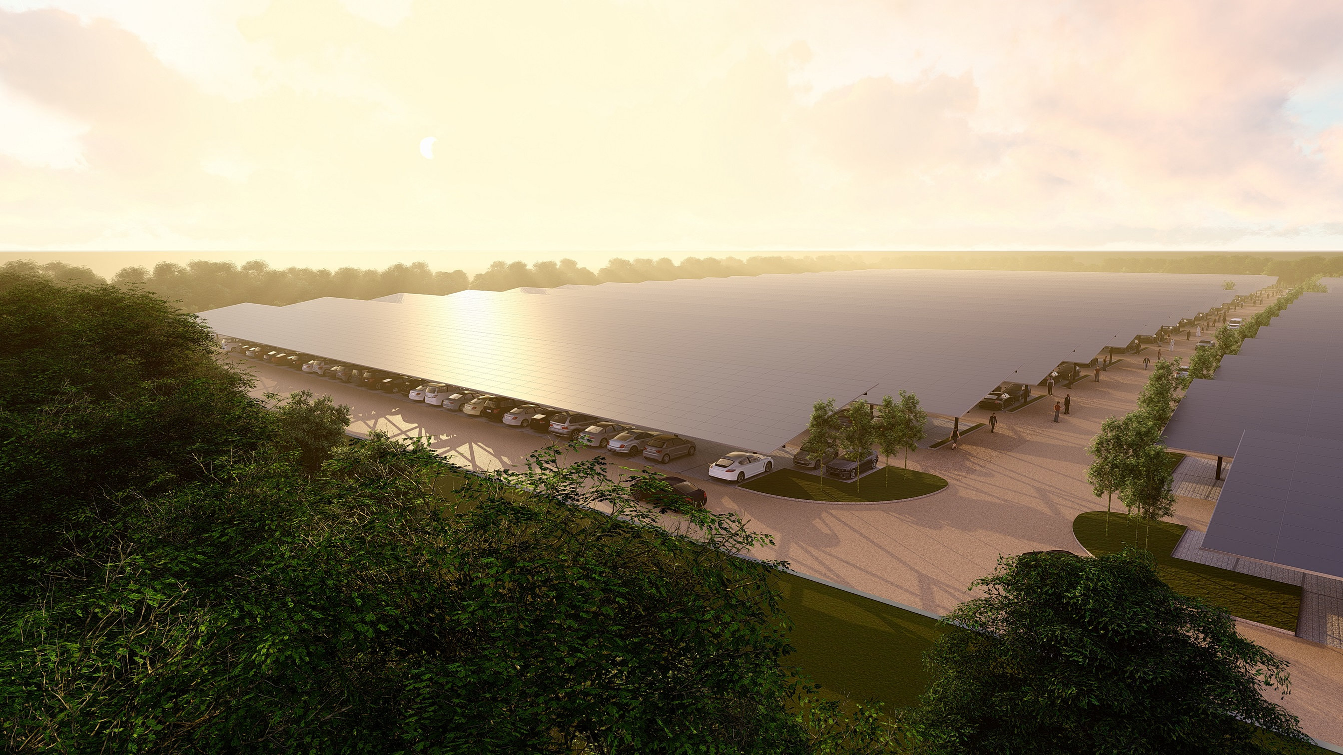 Jugez plutôt, ce sont 15 hectares qui vont être recouverts d’ombrières, abritant elles-mêmes des milliers de panneaux photovoltaïques. Cette centrale solaire permettra à terme de produire l’équivalent de la consommation électrique annuelle de 12.000 personnes.