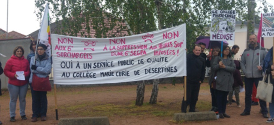 Des enseignants étaient présents dans le cortège pour la défense de la fonction publique hier… et, entre autres, des professeurs du collège Marie-Curie de Désertines. Ils s’étaient mobilisés hier matin en préambule de cette manifestation devant l’établissement.