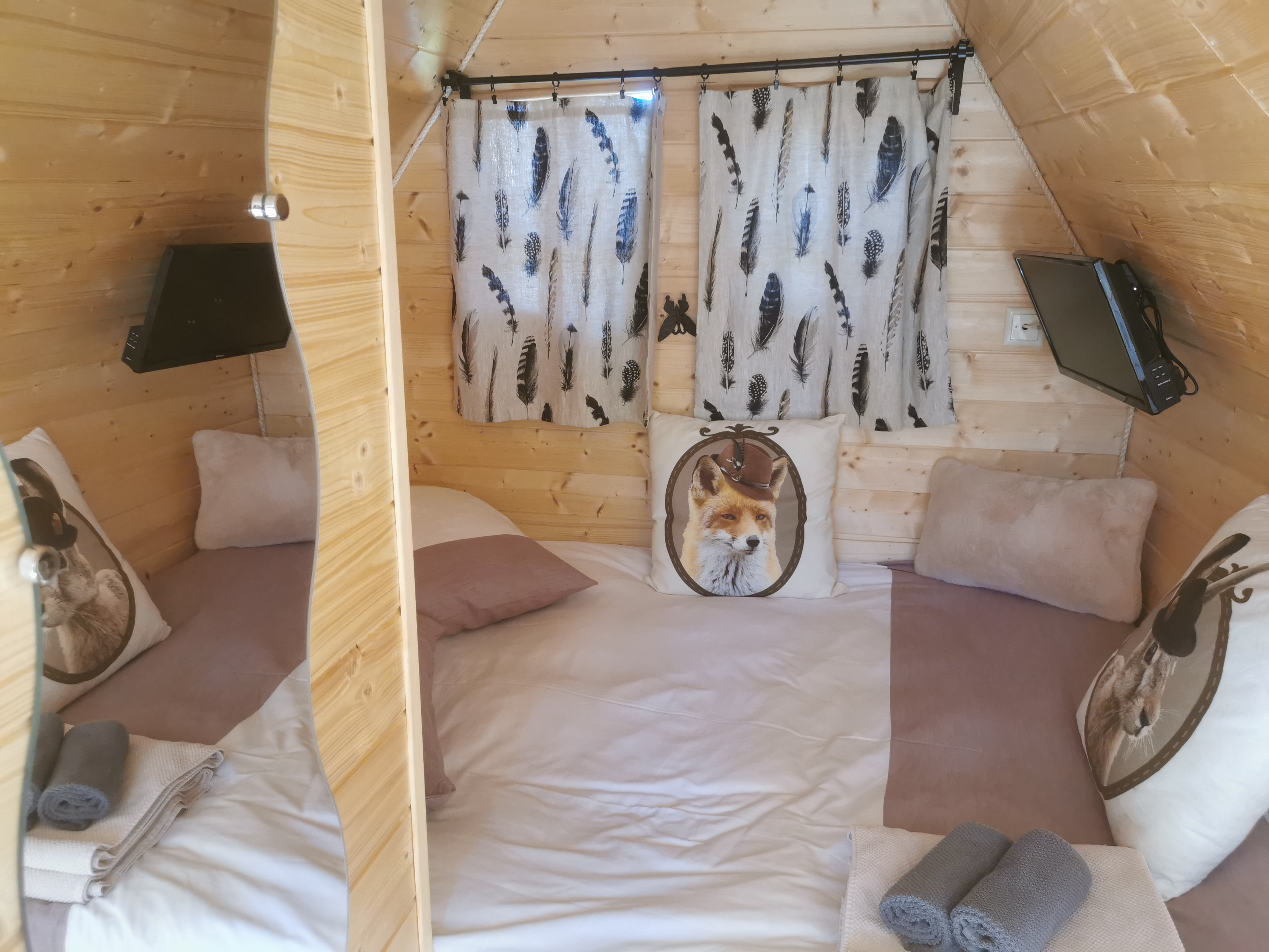 Et la dernière trouvaille du couple de propriètaires, ce sont des petites cabanes en bois sorties tout droit d'un paysage de conte ou de dessin animé.