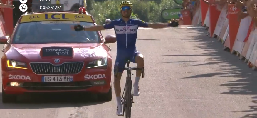 Ne restez plus qu'à "gérer" le difficile Col de la Colombière et la plongée vers Le Grande Bornand avant d'exulter sur la ligne d'arrivée. C'est la première victoire d'étape française sur ce Tour de France. Et c'est, à 26 ans, la première victoire de Julian Alaphilippe sur la plus grande course du monde.