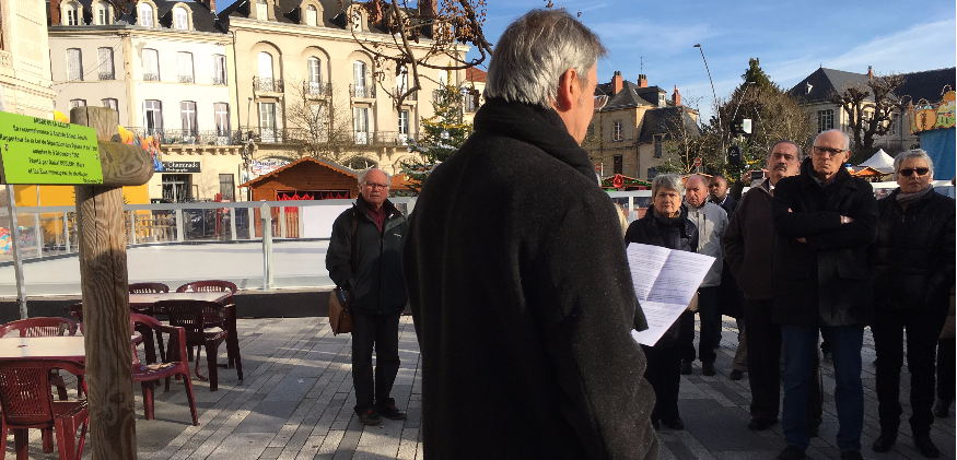 Une cinquantaine de personnes étaient rassemblées devant l’arbre de la laïcité, sur le parvis de l’Hôtel de ville vendredi dernier