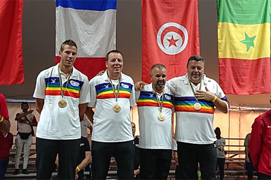 Le joueur de Cosne d’Allier avec le maillot de l’équipe de France en triplettes avec Philippe Quintais, Henri Lacroix et Dylan Rocher. Une compétition mondiale qu’il aborde sans véritables repères, mais avec toujours le même objectif : gagner.