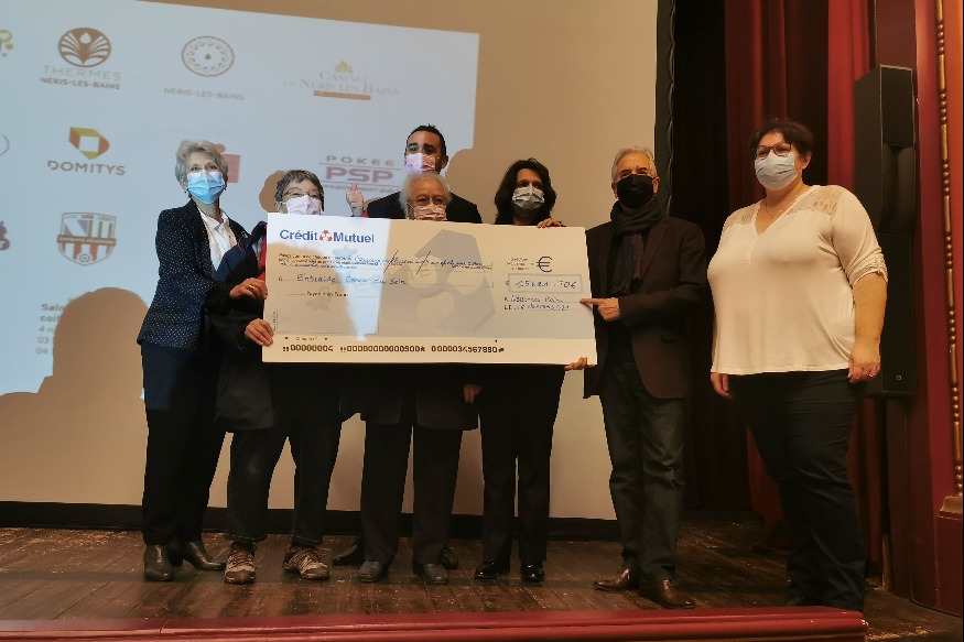 Record battu! L'édition 2021 de La Nérisienne a permis de récolter un total de 15.621,70 euros. Le chèque a été remis à Entraide cancer du sein, ce soir, au théâtre de Néris-les-bains, en présence des partenaires de l'événement. 11.000 euros avaient été récoltés lors de la journée du 3 octobre. La somme a été complétée par d'autres actions organisées dans le cadre d'Octobre rose, sur tout le territoire.