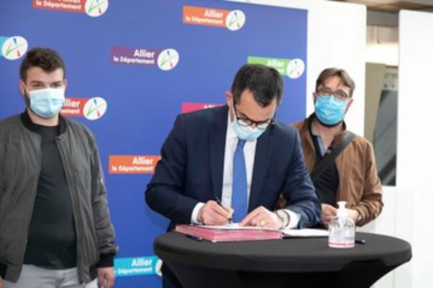 #Stages Face à la crise sanitaire qui impacte les jeunes, @Allierdpt accueille 100 Bourbonnaises et Bourbonnais en stage ou en #apprentissage. Les premiers lycéens et étudiants signent aujourd’hui leur convention et contrat Bienvenue au Département de l'#Allier ! pic.twitter.com/YkxqYg3q70