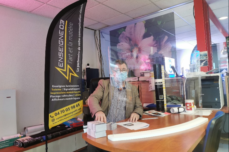 Entreprise montluçonnaise d’ordinaire spécialisée dans la fabrication d’enseignes. Elle s’est un temps spécialisée ces derniers mois dans la fabrication d’équipements de protection. Vous savez, ces éléments en Plexiglass, notamment autour des caisses, que vous avez forcément vus dans les commerces ou les bureaux.