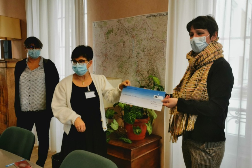 Depuis septembre dernier, les personnels du Centre hospitalier de Montluçon ont accès à des séances de sophrologie, au sein de l'établissement. La salle où elles se déroulent va pouvoir être aménagée grâce à l'argent recueilli via une cagnotte en ligne. Le chèque a été remis ce matin.