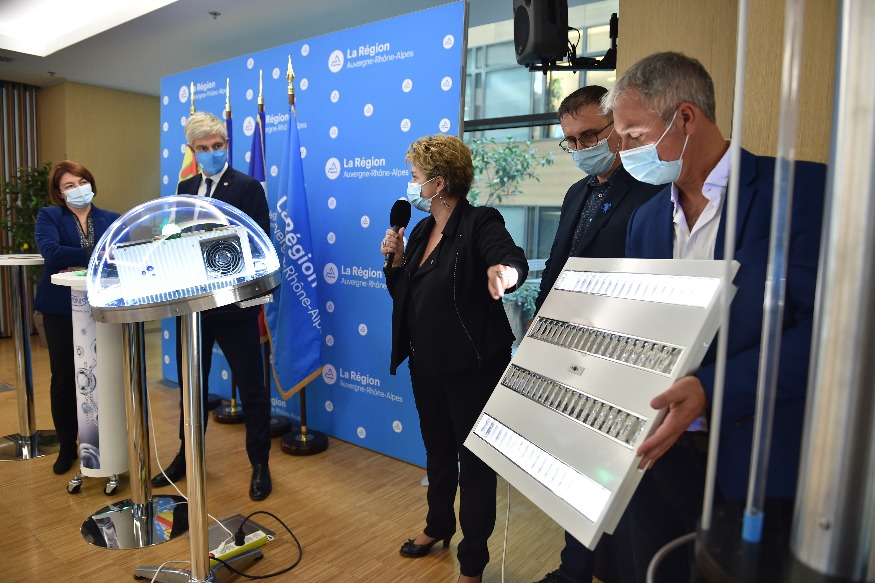 Purifier l'air des espaces clos pour lutter contre la propagation de la covid.Hier, Laurent Wauquiez a présenté les solutions de purification de l'air, produites dans notre région, qui seront déployées d'ici 1 mois dans nos lycées et dans les communes. La Région investit 10M€. pic.twitter.com/z5rLY7LRsk