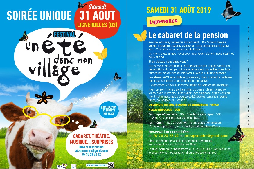 Au programme, une soirée spectacle avec le Cabaret de la pension à partir de 20 heures. En toile de fond, toujours la même volonté pour la Compagnie Attrape sourire d’amener la culture en zone rurale.