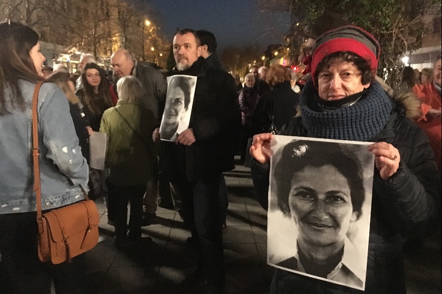 Puis place Piquand en fin de journée avec environ 200 personnes certaines avec des pancartes « ça suffit » ou des portraits de Simone Veil entre les mains