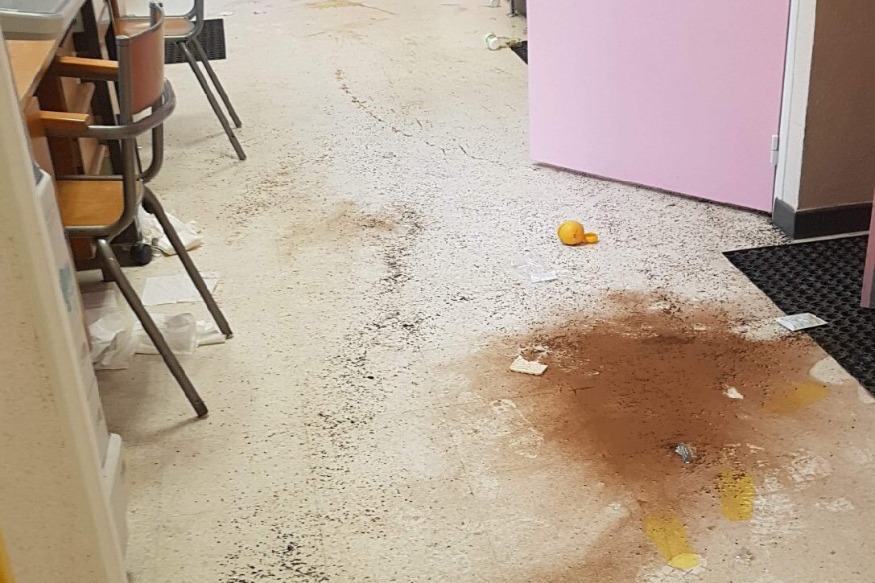 Résultat : des classes sens dessus-dessous, du mobilier, des ordinateurs renversés, des extincteurs vidés, et même des goûters d’enfants dérobés