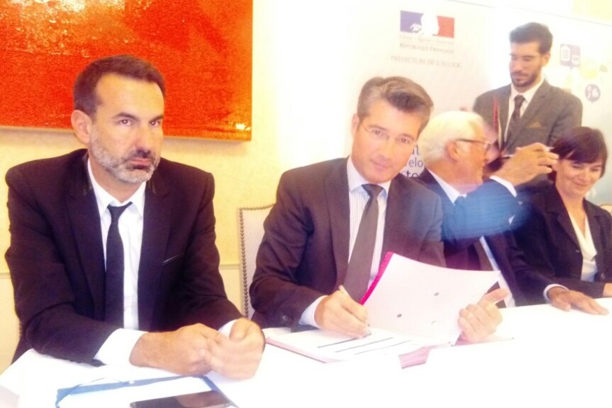 Claude Riboulet a signé avec le maire et le président de Montluçon communauté le contrat de territoires 2017-2020