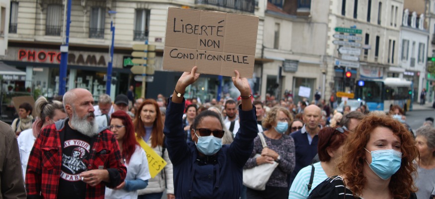 Deuxième manifestation en une semaine, avec un slogan, maintes fois répété « Ton pass, on n’en veut pas » : message clair à l’adresse d’Emmanuel Macron. Les participants considèrent les mesures pour contrer le Covid-19 comme liberticides.