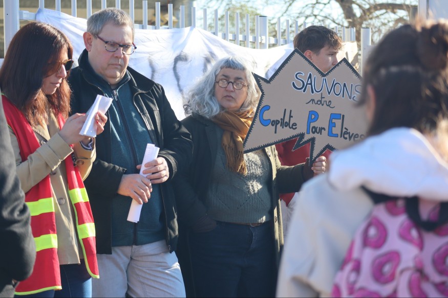 Dans ce collège rural d’environ 200 élèves, la menace de suppression du poste de conseiller principal d’éducation à la rentrée prochaine est vivement contestée. Pour l’heure ce poste est gelé, par l’Education national, alors que depuis la rentrée dernière, l’établissement ne fonctionne déjà plus qu’avec une CPE à mi-temps. Pour la soixantaine d’enseignants, élèves, parents d’élèves ou élus, présents hier devant l’établissement, le message était clair : une CPE est indispensable.