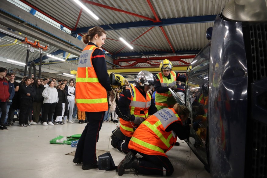 Une démonstration de désincarcération de véhicule accidenté grandeur nature a également été menée par les pompiers, devant les lycéens..