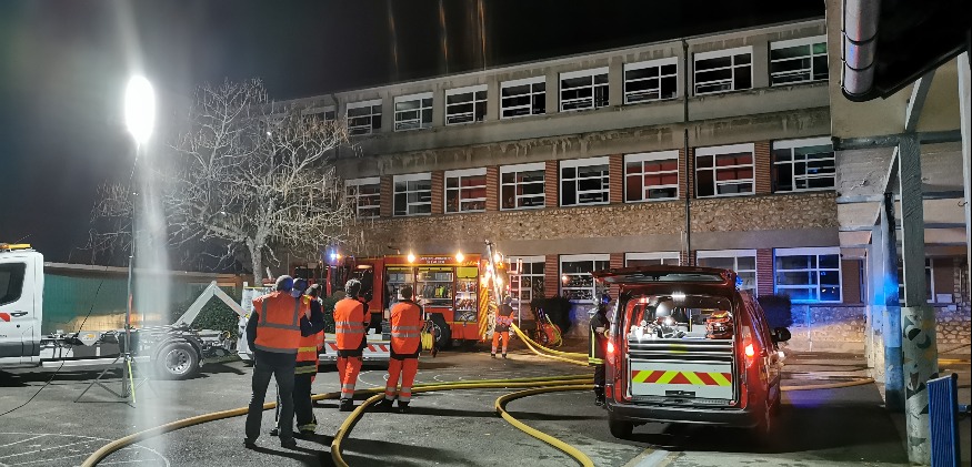 Les cours étant terminés depuis 16h30, seulement une vingtaine d'enfants accueillis en garderie étaient présents dans l'enceinte de l'établissement, mais dans un autre bâtiment. Ils ont été, par précaution, évacués vers l'hôtel Le Lyon vert voisin. Deux encadrants, un homme et une femme, ont été légèrement incommodés après avoir inhalé des fumées. Une trentaine de pompiers et dix engins ont été mobilisés le temps de l'intervention. Le feu serait d'origine électrique.