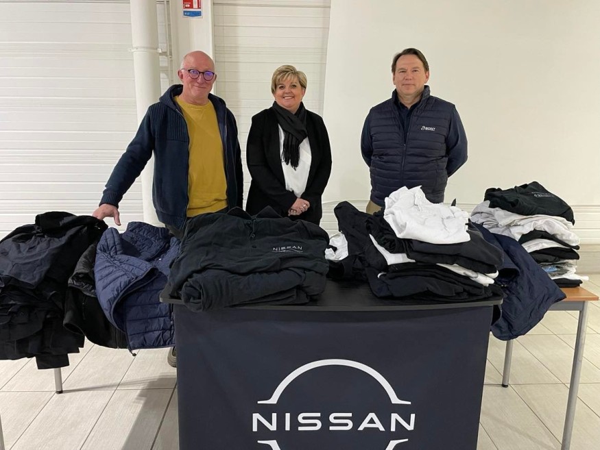 L’entreprise qui possède plusieurs garages Nissan ou Renault dans la région vient en fait de changer d’identité visuelle. Alors plutôt que de jeter ou de laisser au fond des cartons des vêtements avec l’ancien logo mais en très bon état, elle en a fait don aux Restos. Romuald Auvity est le responsable du site Nissan à Montluçon, où a eu lieu, hier soir, la remise de ces vêtements.