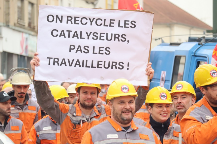 En tenue de travail Orange, Séverine, salariée depuis six ans, a été ému par le soutien affiché. "Cela fait chaud au coeur de voir tout ce monde, raconte-t-elle, pancarte "ne touche pas à ma forge" au-dessus de la tête. Ca fait de la peine aussi. On n'est pas qu'une usine. On est une famille. Ca me fait de la peine de perdre mes collègues. On ne sait pas ce qu'on va devenir".