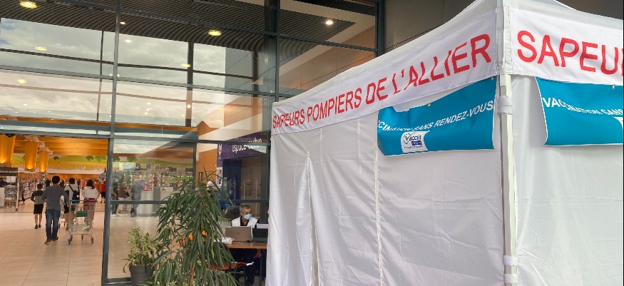Deuxième opération de vaccination dans les centres commerciaux dans l’Allier à Moulins, Montluçon et Vichy dans le cadre du dispositif "Aller vers". Lancé par La préfecture de l'Allier, le Conseil Départemental, l'Agence régional de Santé et le Service départemental d'incendie et de secours.