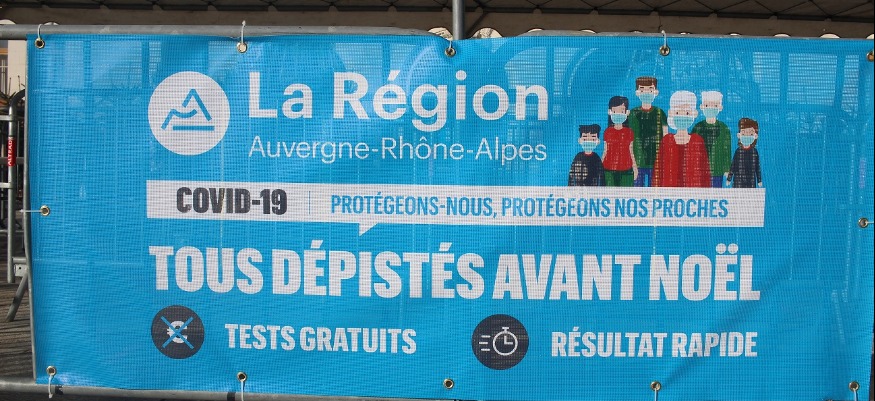 Une opération de dépistage à quelques jours du réveillon de Noël proposée dans toute la région Auvergne-Rhône Alpes. Le but c'est de limiter les risques de contaminations lors des retrouvailles en famille les 24 et 25 décembre.