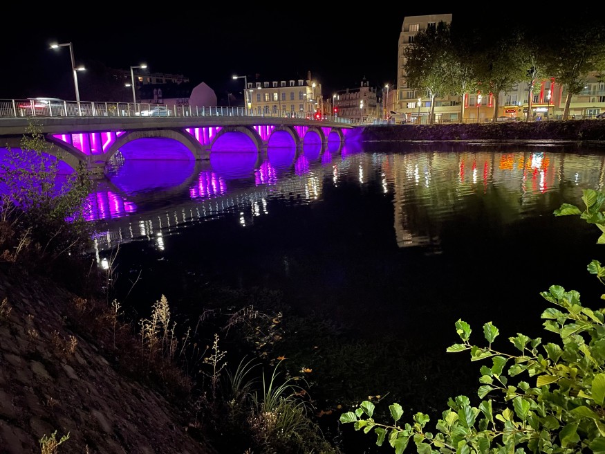 Il est en rose actuellement, mais il pourra aussi s’habiller de bleu, d’orange, courant novembre, de rouge et blanc pour les fêtes, et ponctuellement en bleu-blanc-rouge.